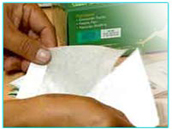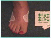 Stretch the adhesive around your feet so that the pad is making good contact with the skin on all parts of the packet.